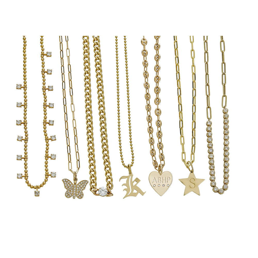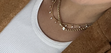 14kt link chain with 30 point diamond can be attached or as a drop. For customization with your stones call Kelly. Length shown 16" Looks great layered 16, 18 & 20 " with same chain and diamond drops.
